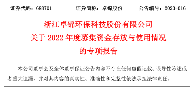關(guān)于2022年度募集資金存放與使用情況專項報告的公告