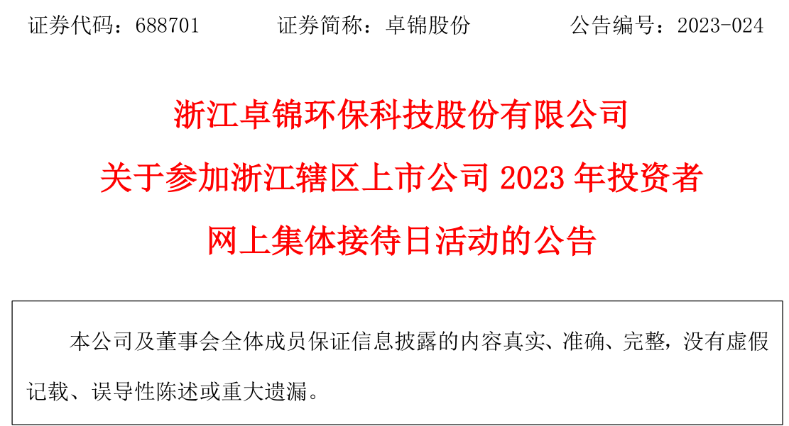 關于參加浙江轄區上市公司2023年投資者網上集體接待日活動的公告