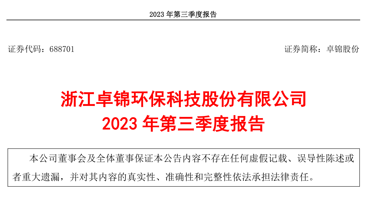 浙江卓錦環??萍脊煞萦邢薰?023年第三季度報告