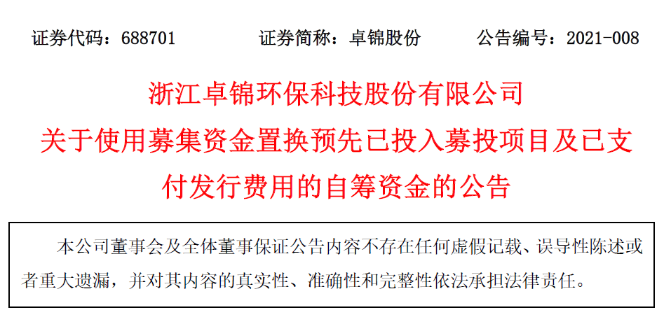 關于使用募集資金置換預先已投入募投項目及已支付發行費用的自籌資金的公告