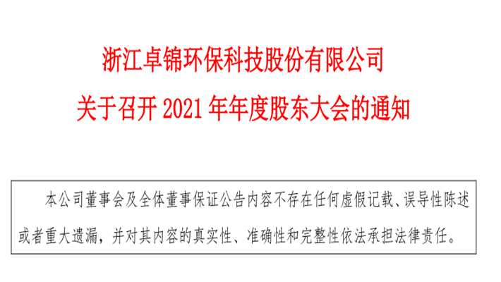 浙江卓錦環保科技股份有限公司2021年度股東大會通知