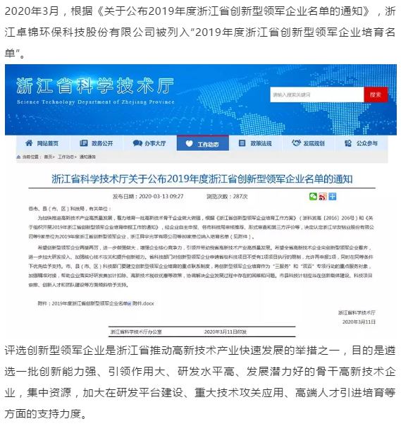 以科技促發(fā)展、以創(chuàng)新贏未來——卓錦環(huán)保獲得多項科技殊榮