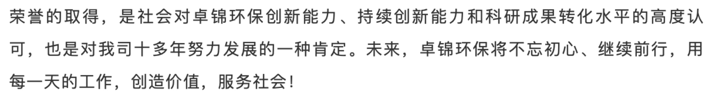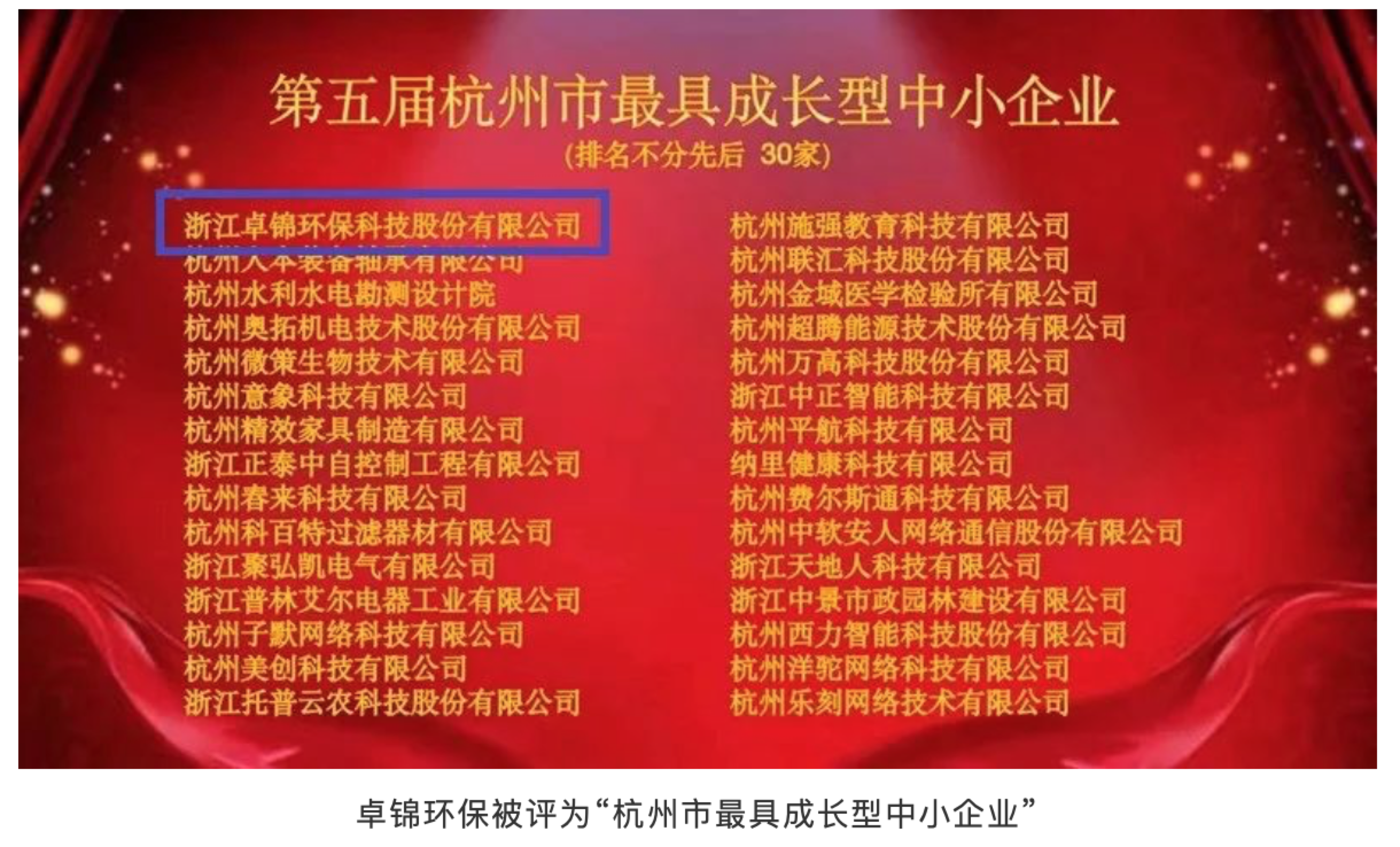榮譽丨卓錦環保榮獲“杭州市最具成長型中小企”稱號