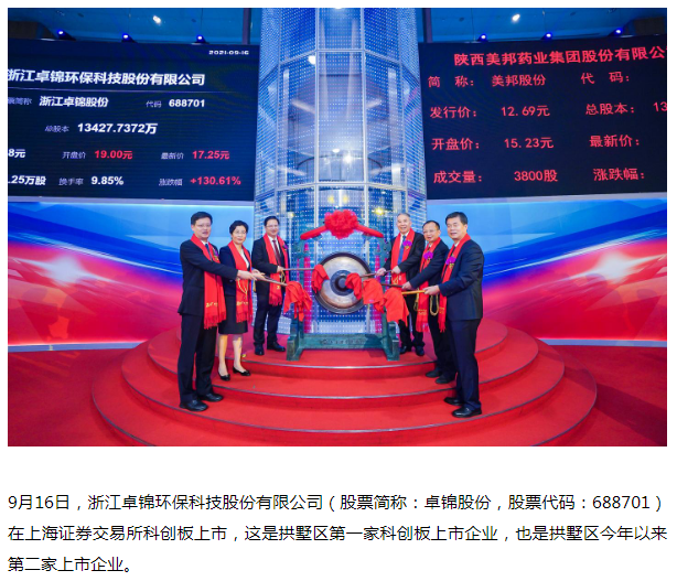 卓錦環保,今日鳴鑼上市!拱墅迎來第20家上市企業