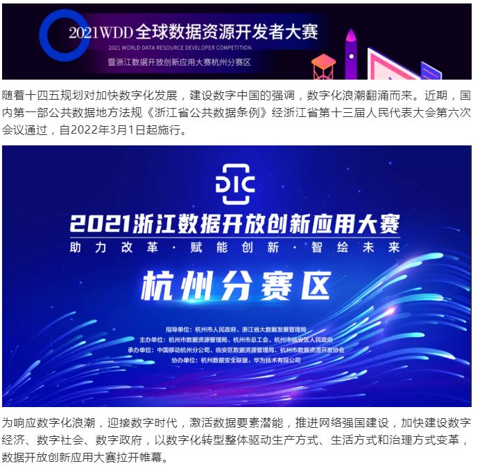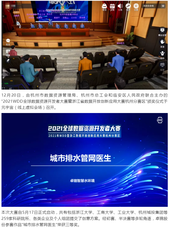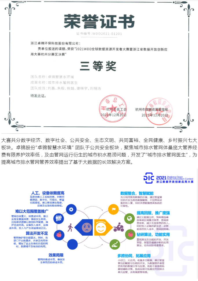 卓錦股份榮獲“2021WDD全球數據資源開發者大賽暨浙江省數據開放創新應用大賽杭州分賽區”三等獎
