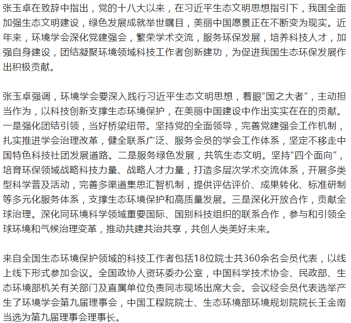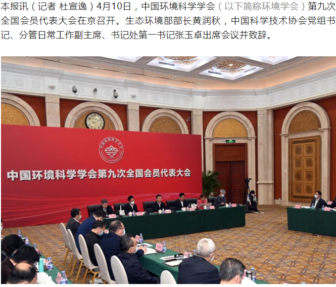 中國(guó)環(huán)境科學(xué)學(xué)會(huì)第九次全國(guó)會(huì)員代表大會(huì)召開