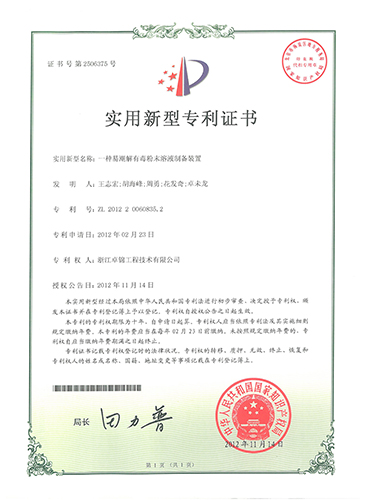 | 1 | 飲用水處理用粉狀藥料自動投加設備 | 國家科技部創新基金項目 |